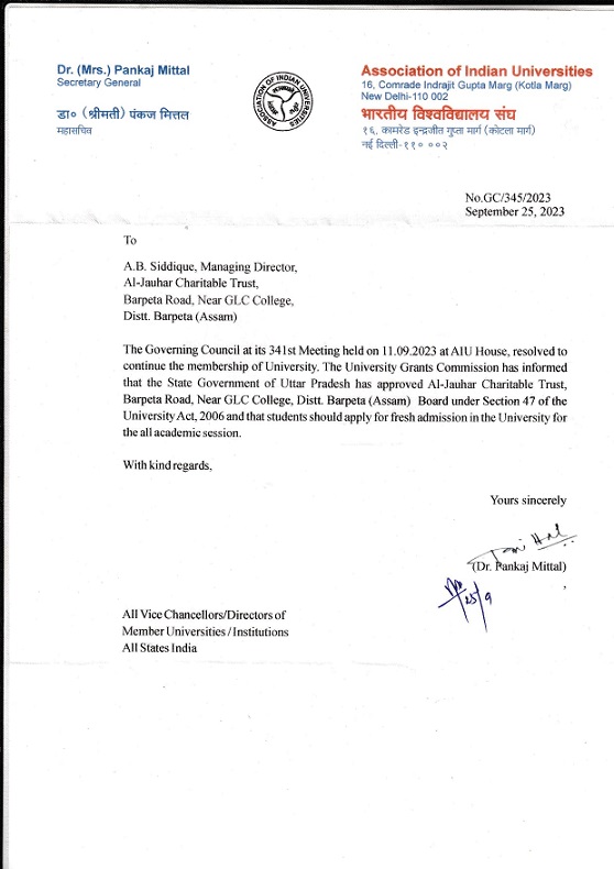 - ↪Recognition by Association of Indian Universities (AIU) & Trust Approval – Click Here